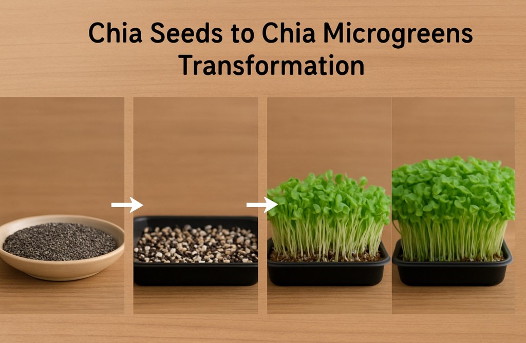 This image beautifully captures the journey of chia seeds transforming into lush microgreens. It all begins with dry seeds, which are then spread on a moist growing surface. With the right care—light, water, and warmth—those tiny seeds begin to sprout in just a couple of days. Within a week, they grow into vibrant, nutrient-packed microgreens ready to harvest. This transformation is not only fascinating to watch, but also a rewarding way to bring fresh, homegrown greens into your meals.